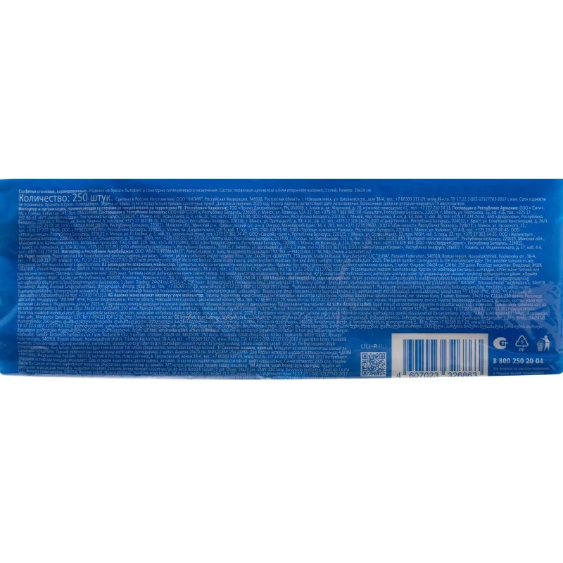 Салфетки бумажные Лилия белые 24х24 1сл 250шт/уп