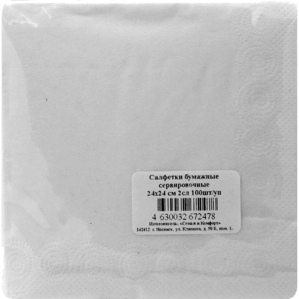 Салфетки бумажные сервировочные 24х24 см 2сл 100шт/уп