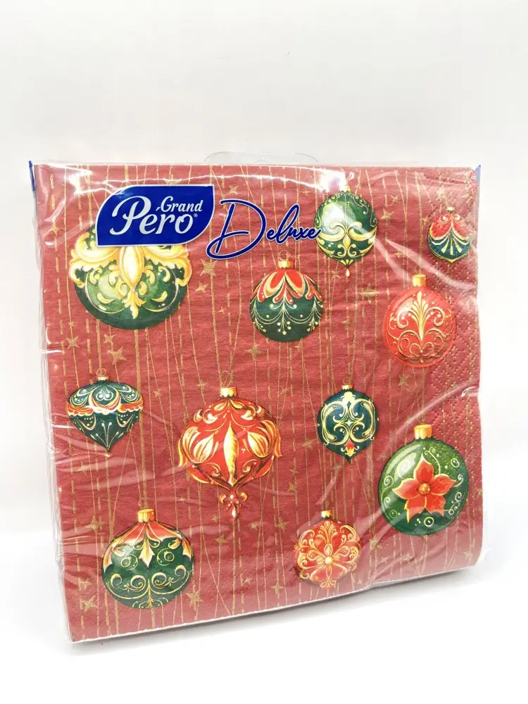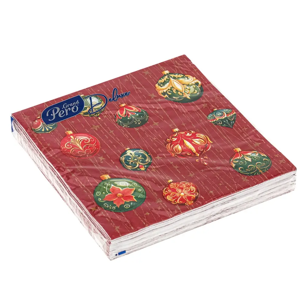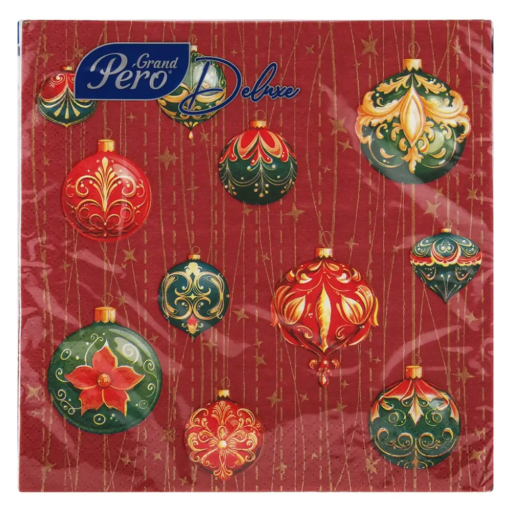 Салфетки бумажные новогодние Grand Pero Deluxe "Волшебный занавес". Трехслойные. В 1 упаковке – 20 штук.