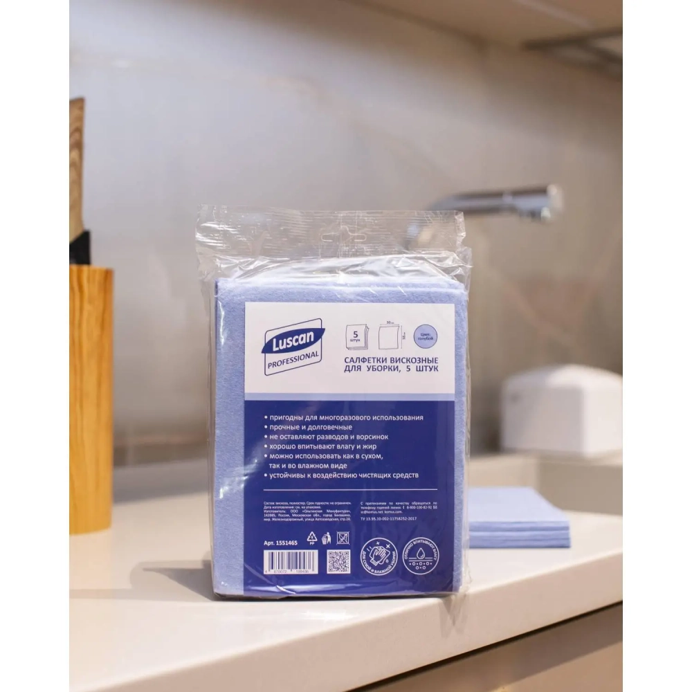 Салфетки хозяйственные Luscan Professional виск 90г/м2 30х38 5шт/уп голубые