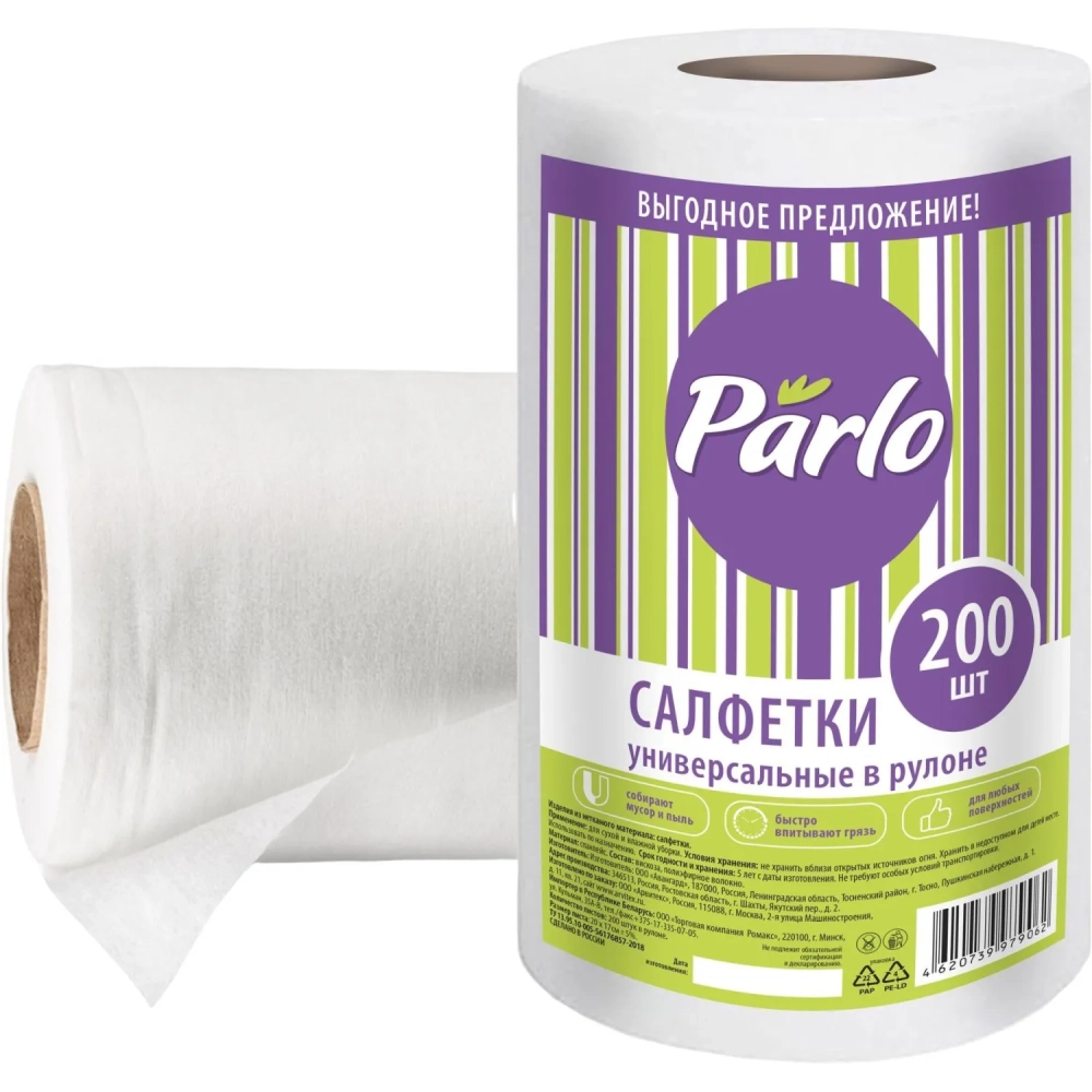 Салфетки хозяйственные Master Fresh спанлейс 45г/м2, 20х17см, 200л/рул