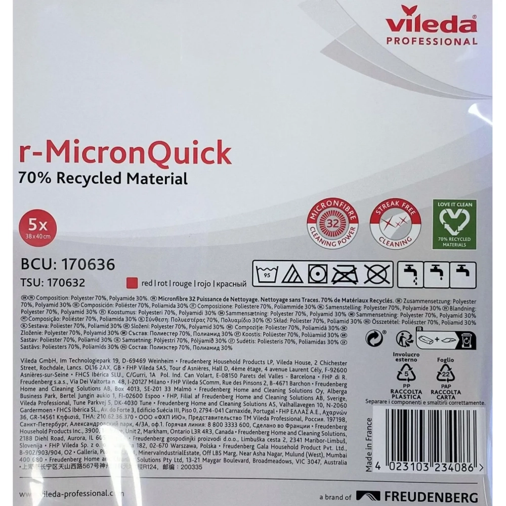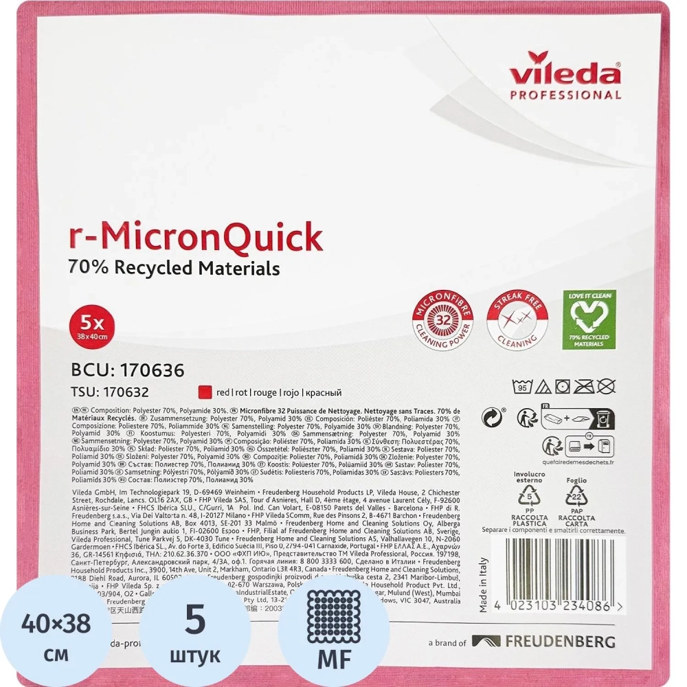Салфетки хозяйственные Vileda р-МикронКвик 40х38 см красные 170636 5шт/уп