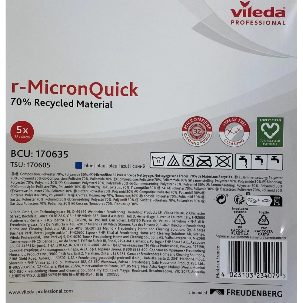 Салфетки хозяйственные Vileda р-МикронКвик 40х38 см синие 170635 5шт/уп