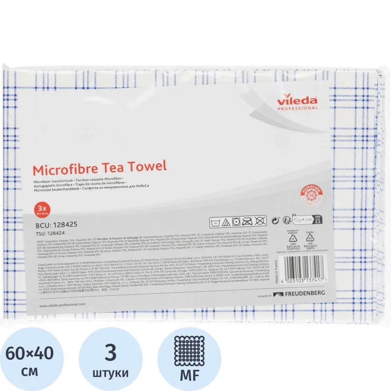 Салфетки хозяйственные Vileda ТиТауэл микро 40х60см бел/син 3шт/уп 128425