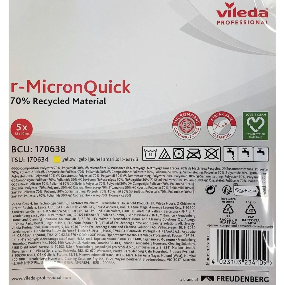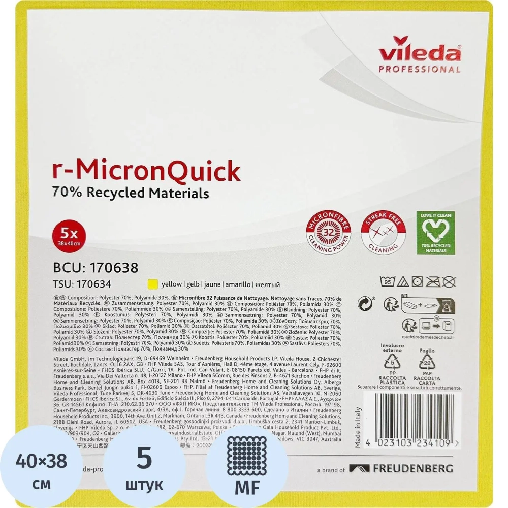 Салфетки хозяйственные VP р-МикронКвик 40х38 см желтые 5шт/уп 170638