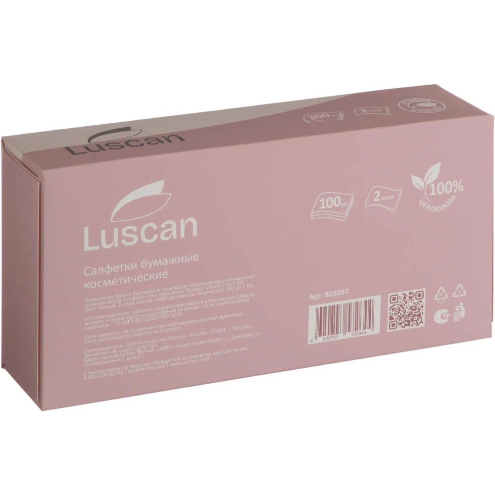 Салфетки косметические Luscan 2сл 100шт/уп белые