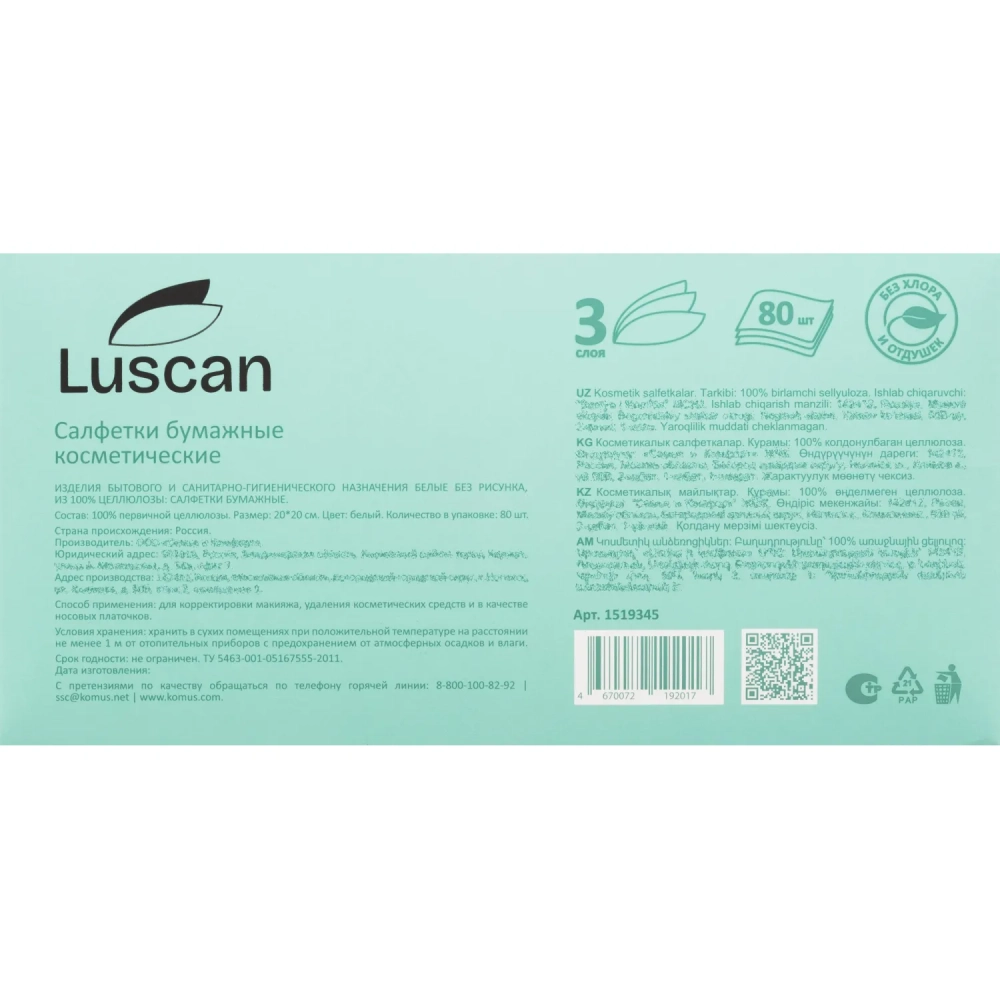 Салфетки косметические Luscan 3сл 80шт/уп белые
