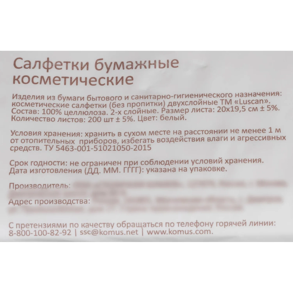 Салфетки косметические в пленке LUSCAN 2сл. 200 листов