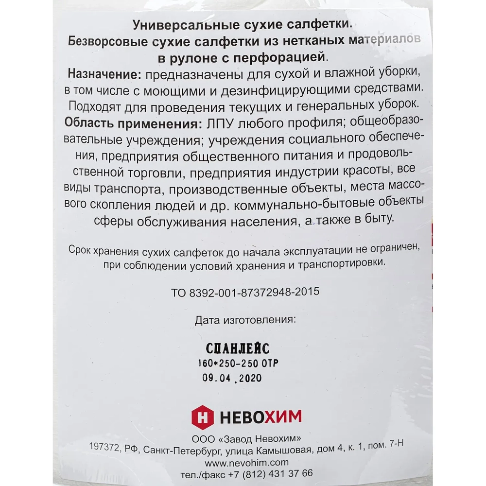 Салфетки сухие Невохим д/дез. см.блок д/контейнера 5л спанлейнс 250шт/уп