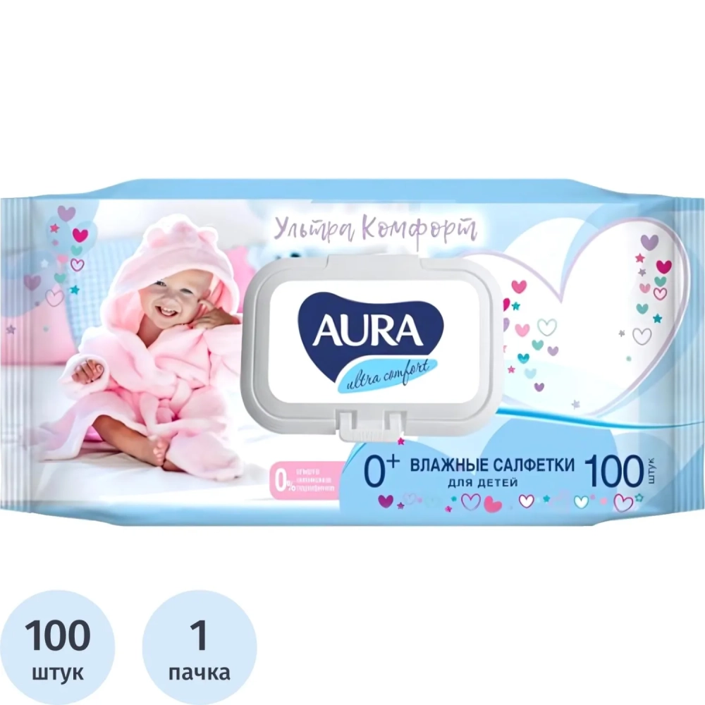 Салфетки влажные AURA для детей ULTRA COMFORT 100шт. с крышкой