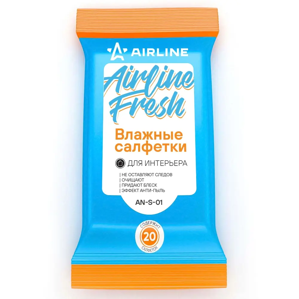 Салфетки влажные для автосалона и интерьера AIRLINE yе оставляют на панели разводов и ворсинок; создают защитную противопылевую пленку; обладают полировочным и антистатическим свойствами; благодаря специальной пропитке удаляют большинство загрязнений.