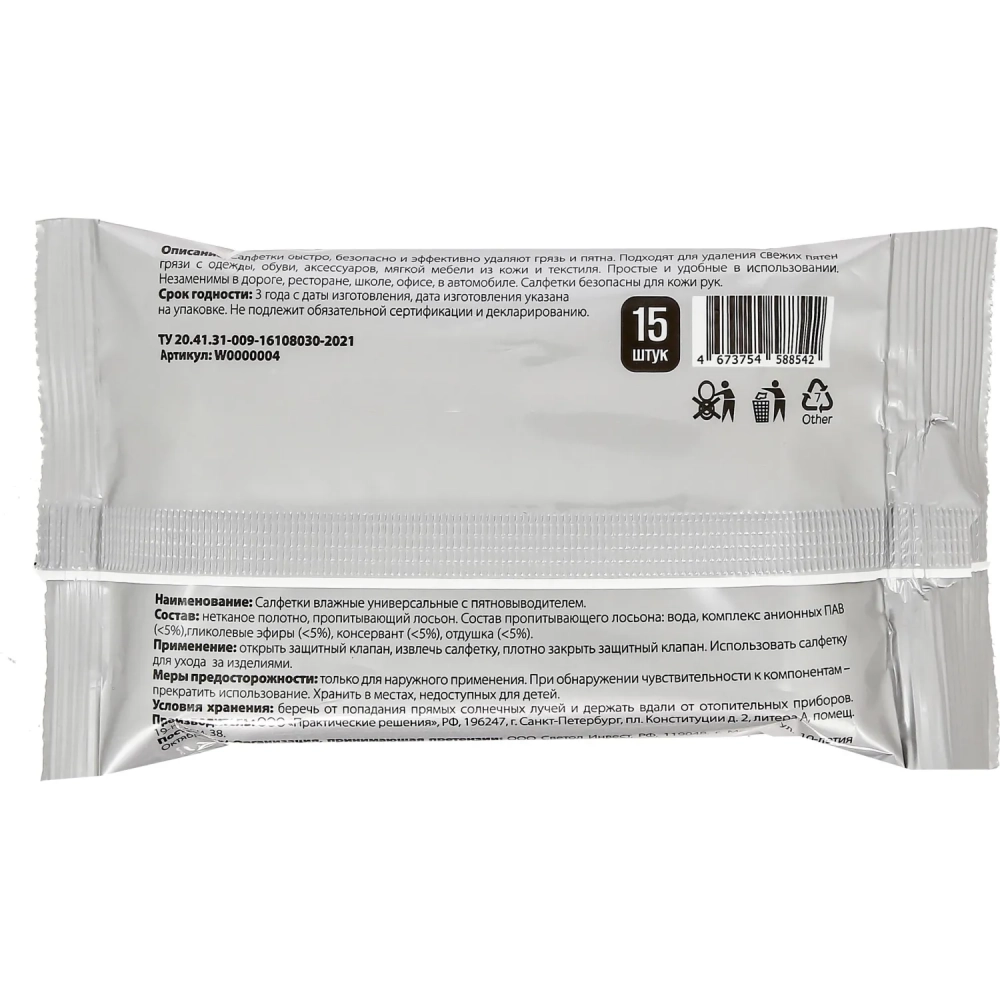Салфетки влажные для обуви и одежды Svelli универс с пятновывод,15 шт в уп