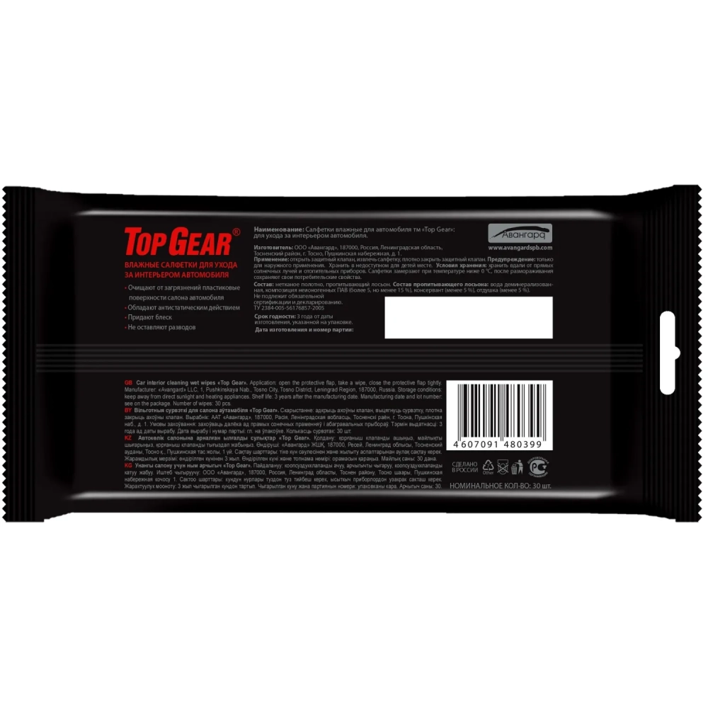 Салфетки влажные для салона автомобиля Top Gear №30