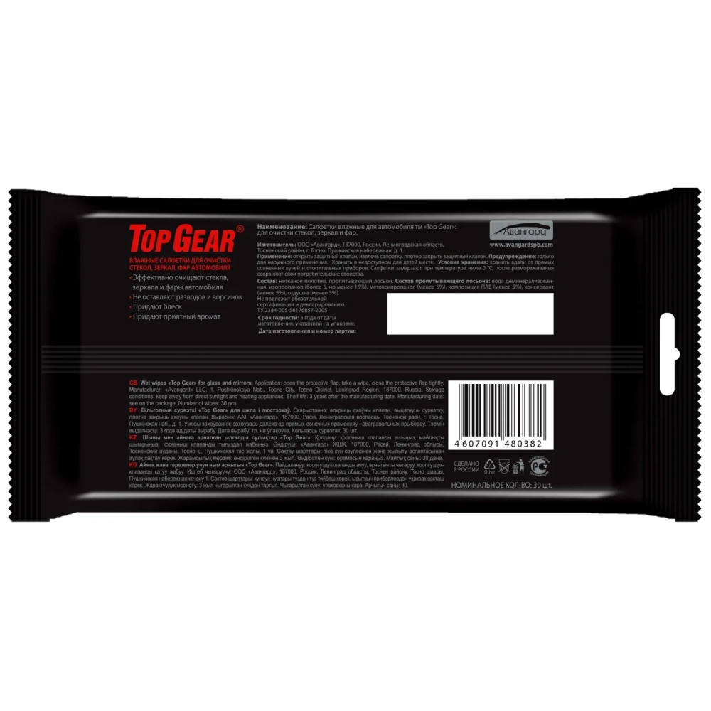 Салфетки влажные для стекол Top Gear №30