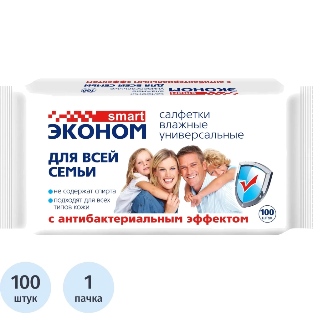 Салфетки влажные Эконом Smart №100 для всей семьи антибак эффект 100шт/уп