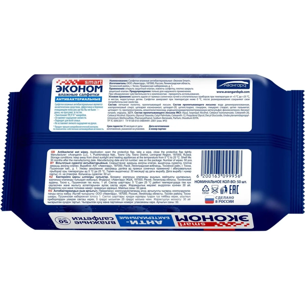 Салфетки влажные Эконом smart №50 антибактериальные санитайзер 50шт/уп
