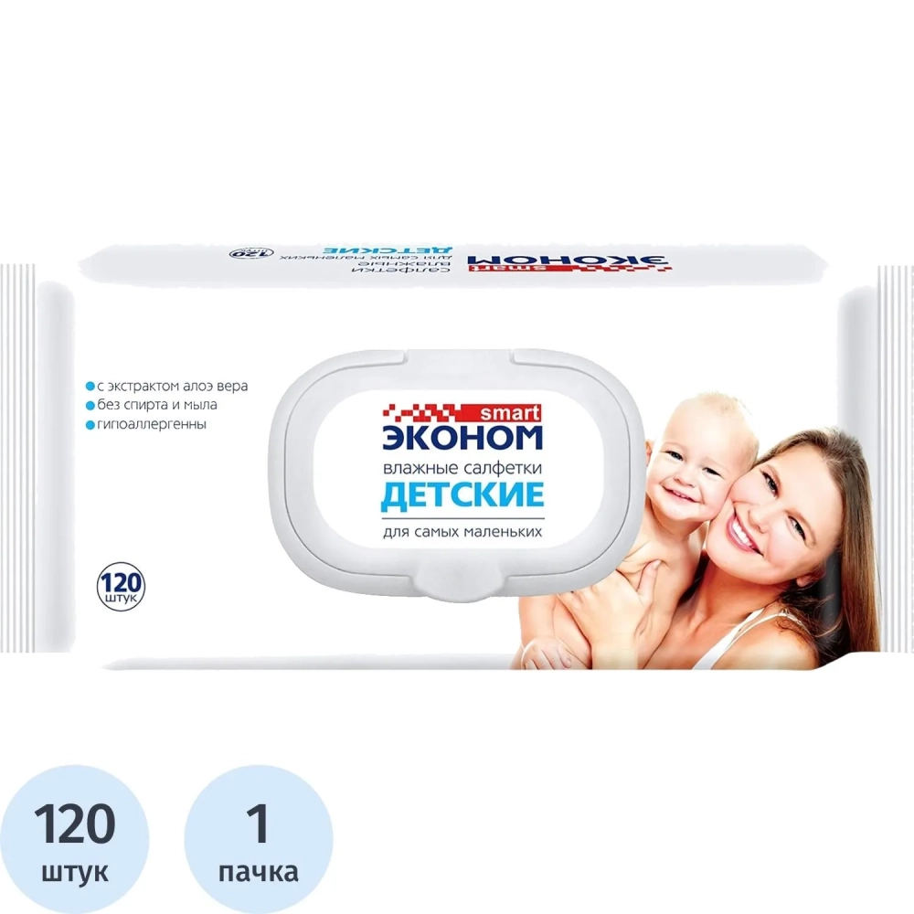 Салфетки влажные Эконом smart детские 120шт./уп. с клапаном 30108
