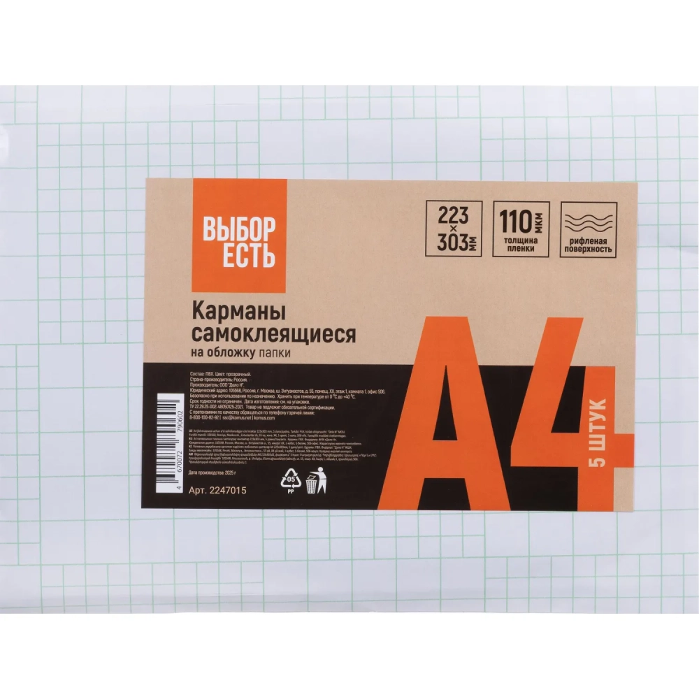 Самоклеящиеся карманы Выбор есть на обложку папки А4 223x303мм, 5 шт/уп