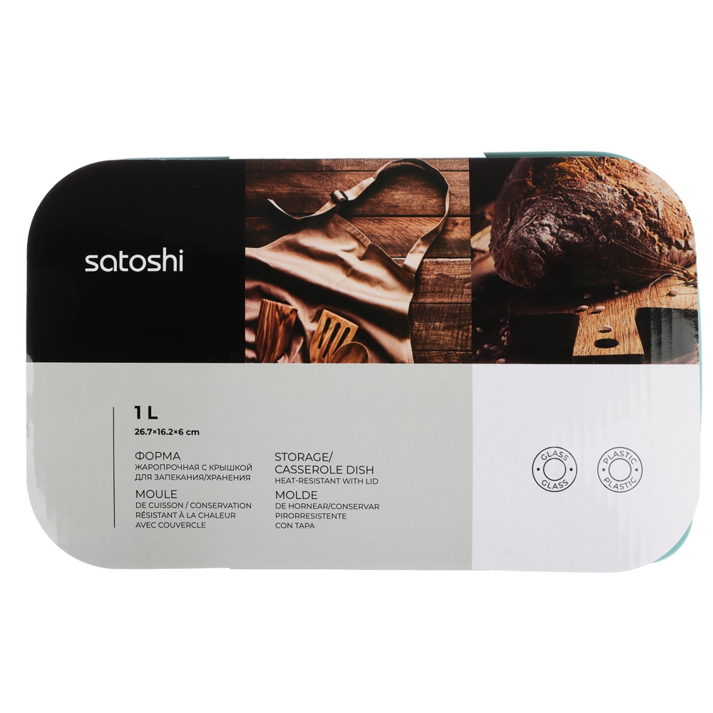 SATOSHI Форма для запекания/хранения жаропрочн. стекло, с крышкой из полипропил. 26,7х16,2х6см, 1л