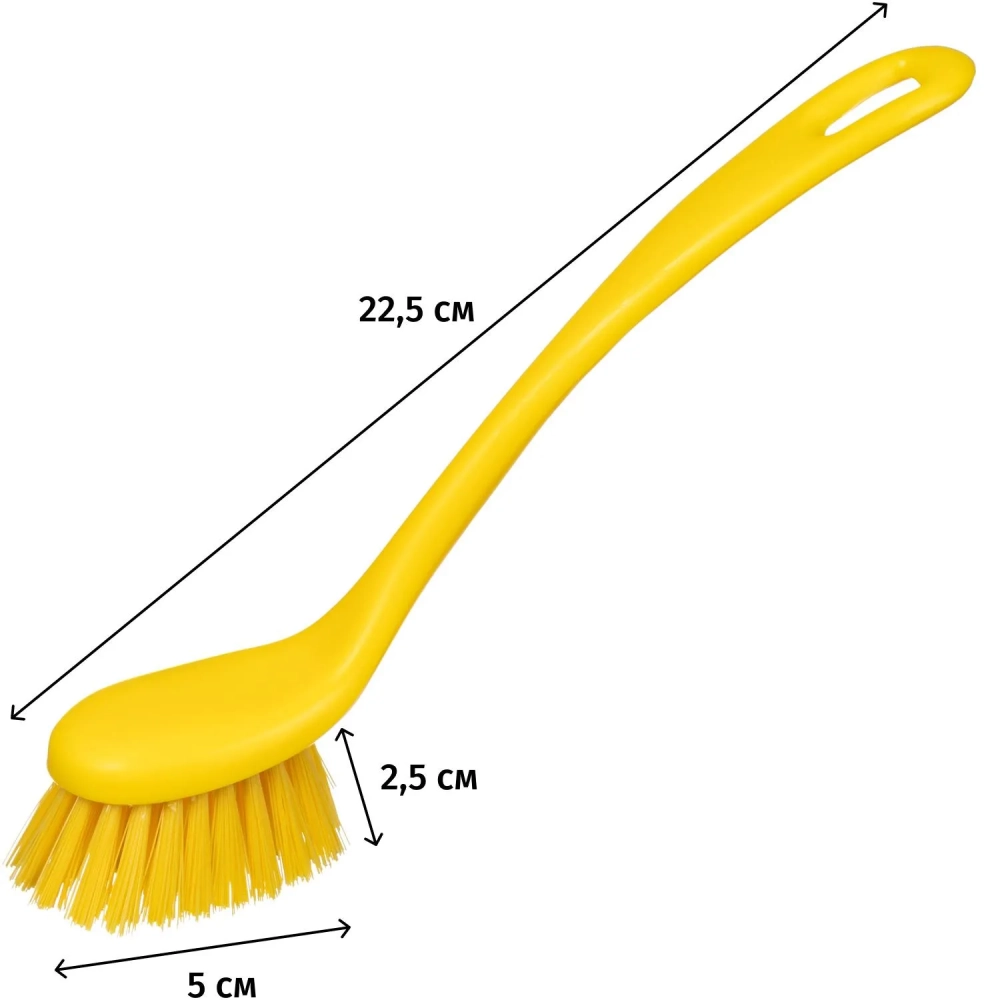 Щетка для мытья посуды FBK, удлинненная полужесткая 225х35мм желтая 10466-4