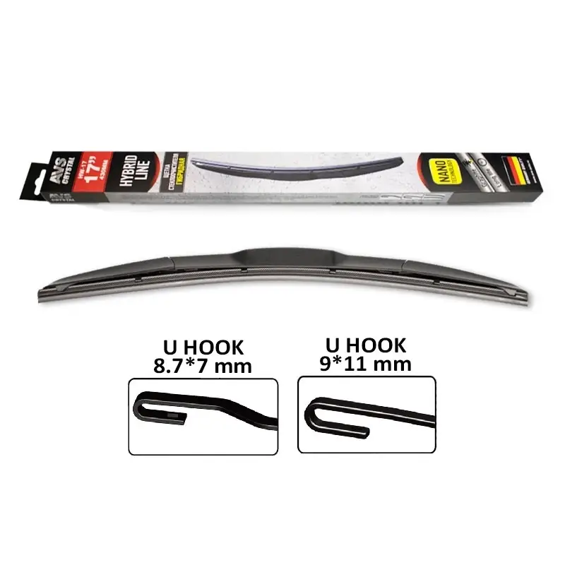 Гибридные щетки стеклоочистителя являются самыми современными и высокотехнологичными щетками представленными на рынке в настоящий момент. В них сочетаются оптимальная прижимная сила по всей поверхности вне зависимости от значения кривизны стекла и прекрасные аэродинамические характеристики. Структура гибридной щетки обеспечивает высоту сопоставимую с бескаркасной благодаря чему сочетаются внешний вид и практичность без потери качества. Универсальный адаптер обеспечит возможность установки на большинство (более 95%) российских и иностранных автомобилей с традиционными типами поводков.