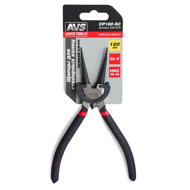 Щипцы для стопорных колец "прямой сжим" 180 мм AVS CP180-SC