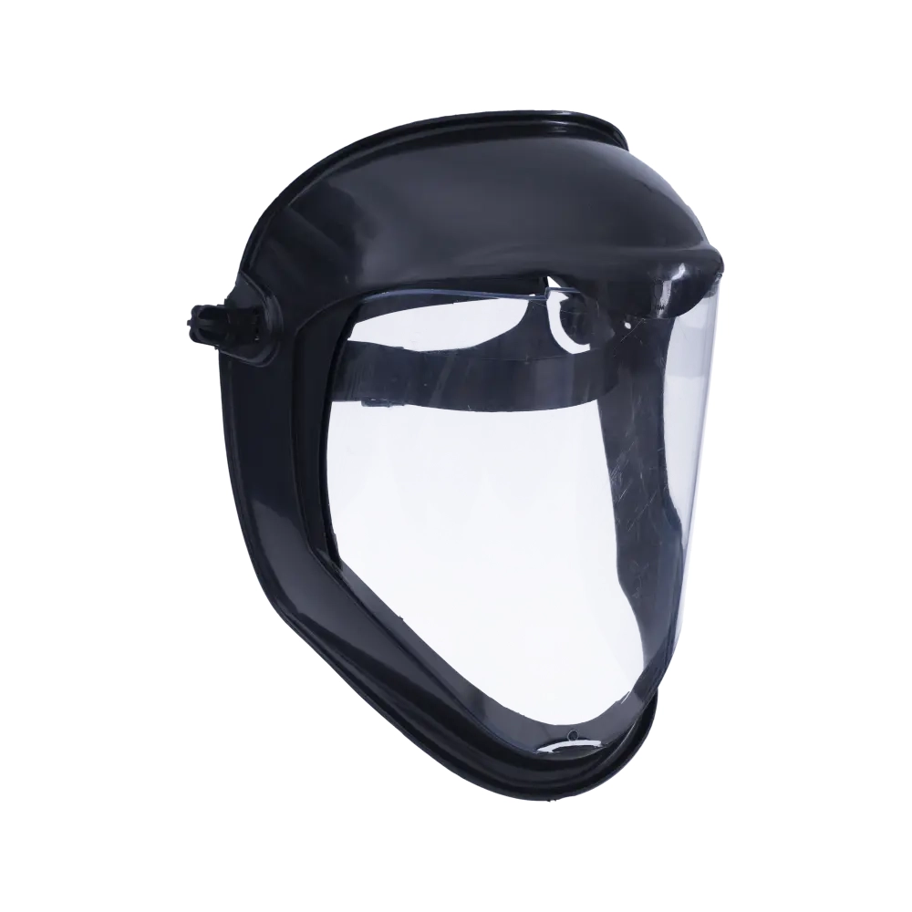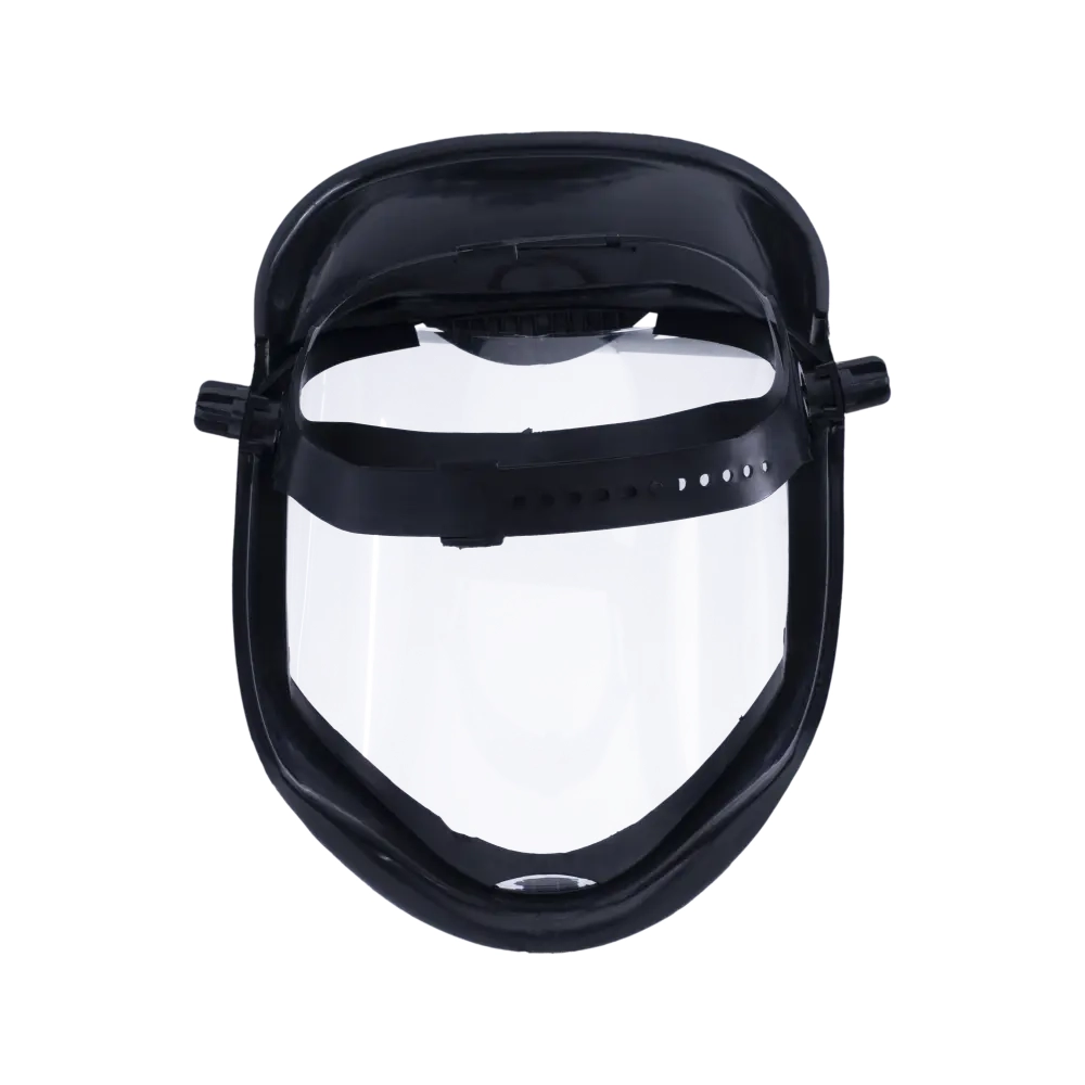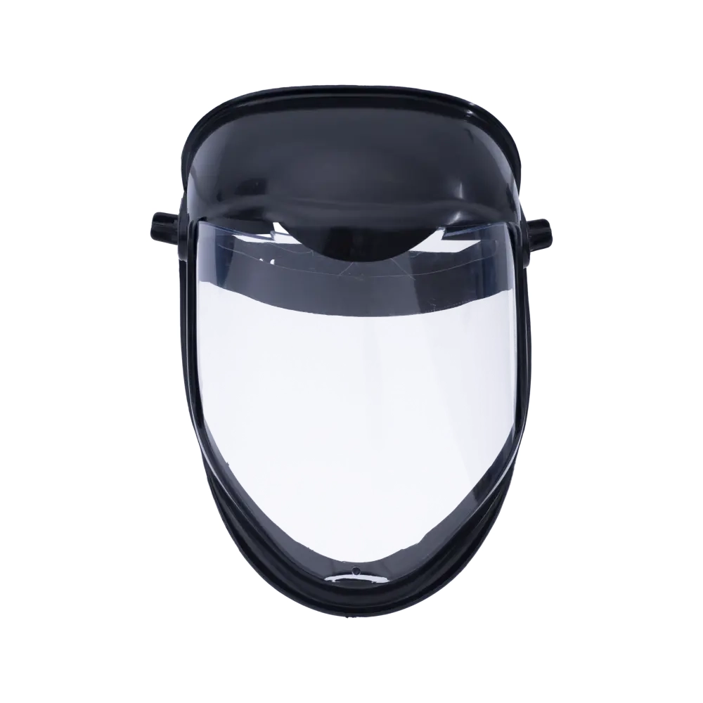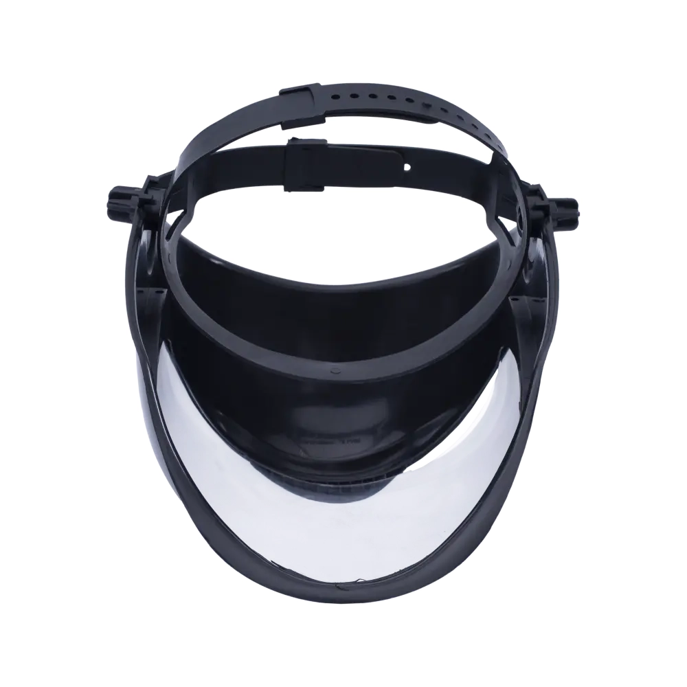 Корпус щитка защитного НБТ-Евро производится из прозрачного ударопрочного полистирола методом литья. Изделие выполнено с наголовным креплением, изготовленного из полиэтилена на литьевых станках. Наголовное крепление регулирует охват головы и крепится к корпусу гайко-барашками, которые обеспечивают перемещение и 3 фиксации корпуса из закрытого положения в открытое и обратно.