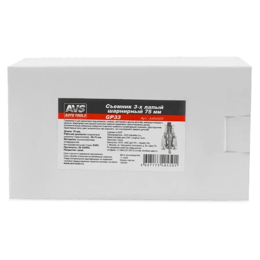 Съемник 3-х лапый шарнирный 75 мм AVS GP33