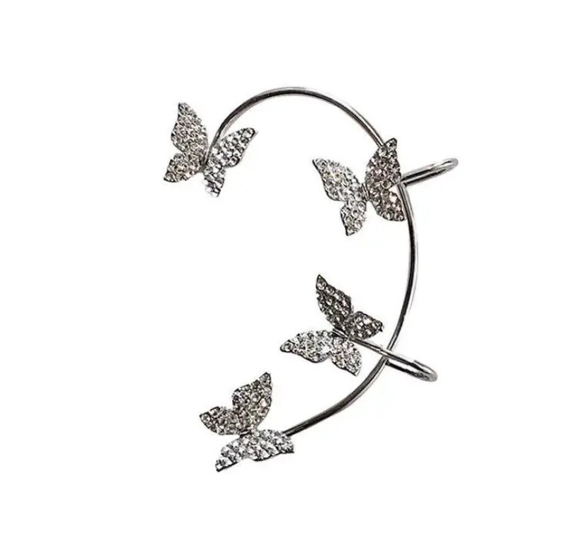 Серьга-кафф Бабочки серебристая