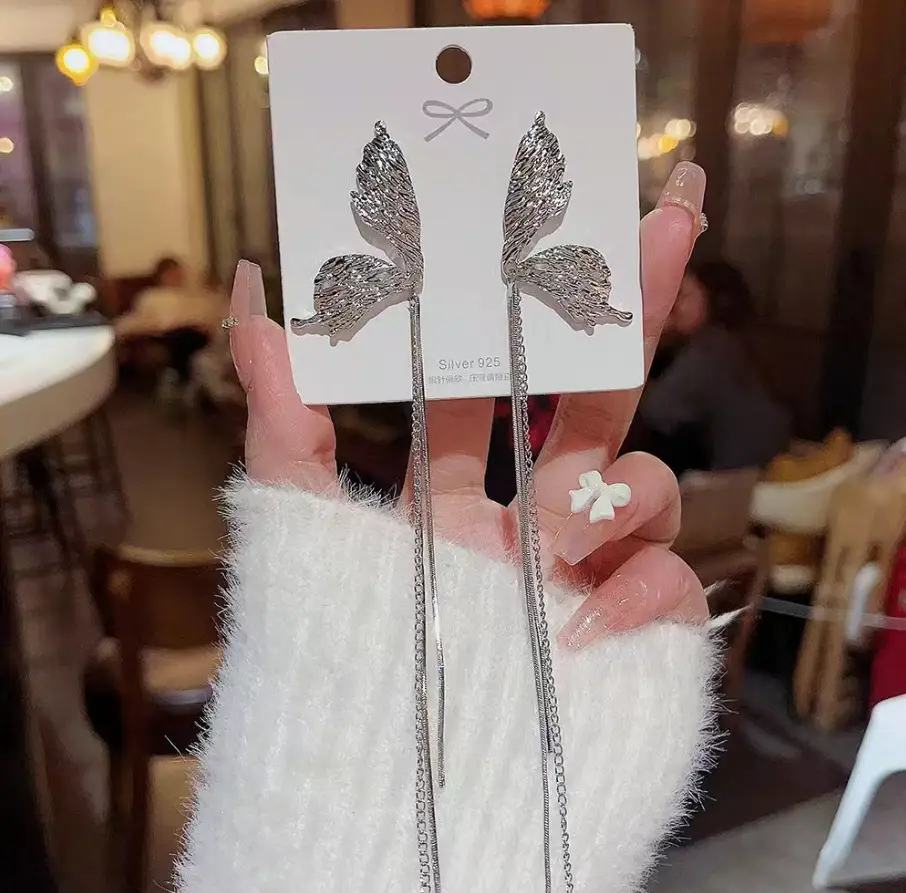 Серьги длинные с Бабочками пусеты