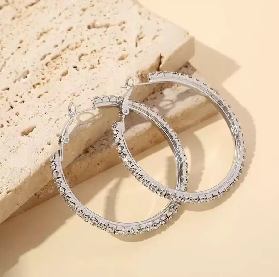 Серьги кольца с кристаллами 4,8 см