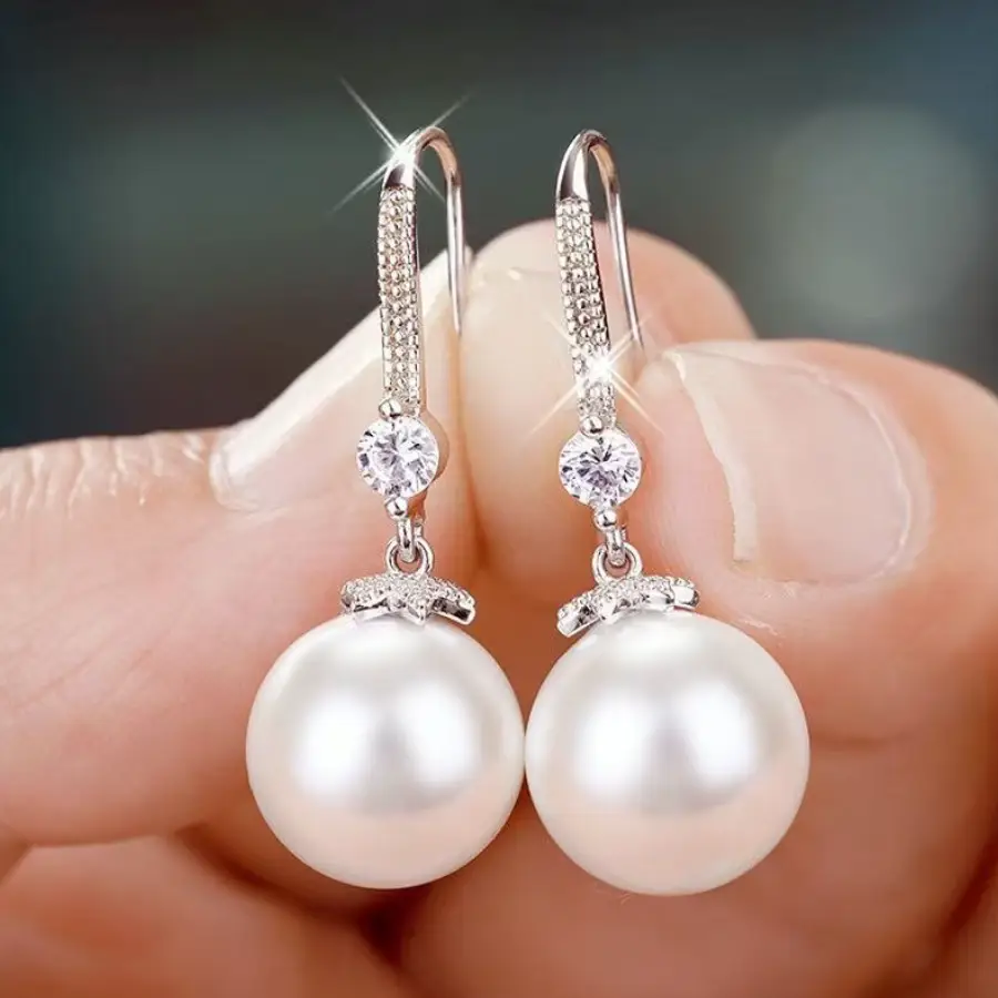 Серьги с кристаллами и жемчужинами