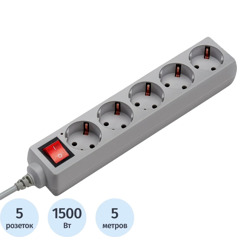 Сетевой фильтр Buro 500SL-5-G 5м (5 розеток) серый (пакет ПЭ)