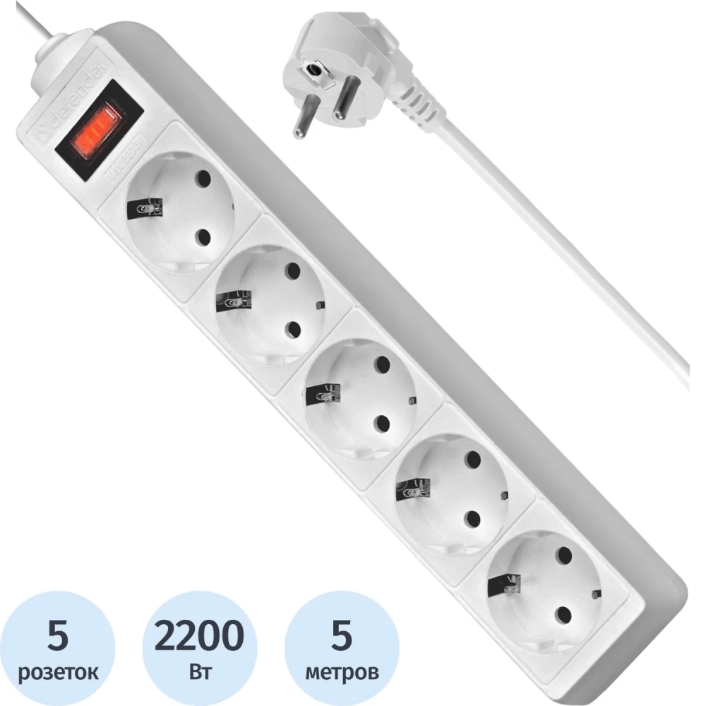 Сетевой фильтр Defender ES 5 5 м, белый, 5 розеток(99483)