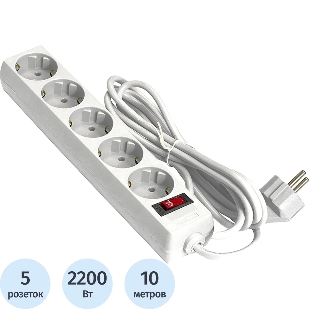 Сетевой фильтр ExeGate SP-5-10W 5р/10м, 10А/2,2кВт, белый(EX279182RUS)