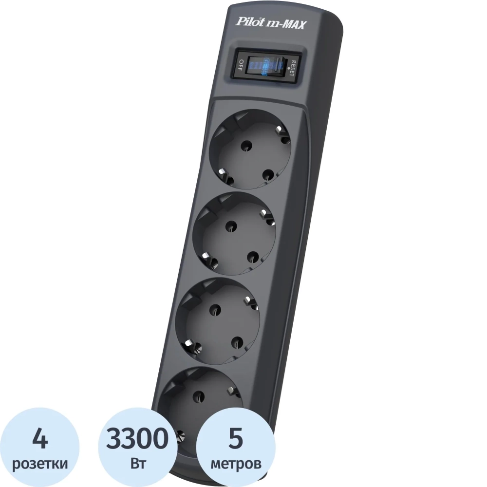 Сетевой фильтр PILOT m MAX (4/5м/16А/150Дж/темн.серый)