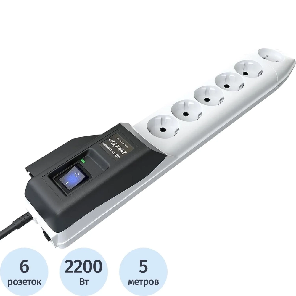 Сетевой фильтр PILOT PRO 5м (10А/2200Вт/6р) серый