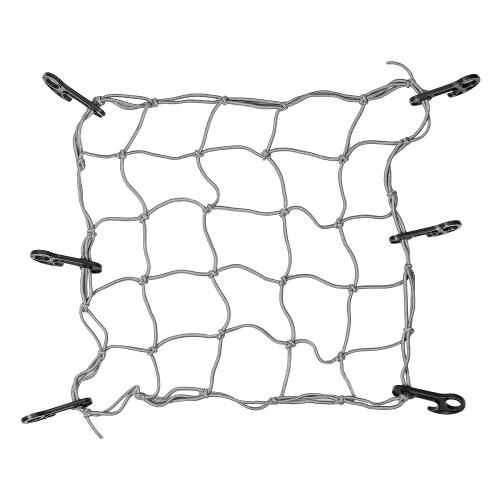 Сетка багажная размером 40x40 см - это идеальное решение для фиксации небольшого багажа в салоне автомобиля или на малогабаритной технике, такой как мотоциклы, квадроциклы или снегоходы.