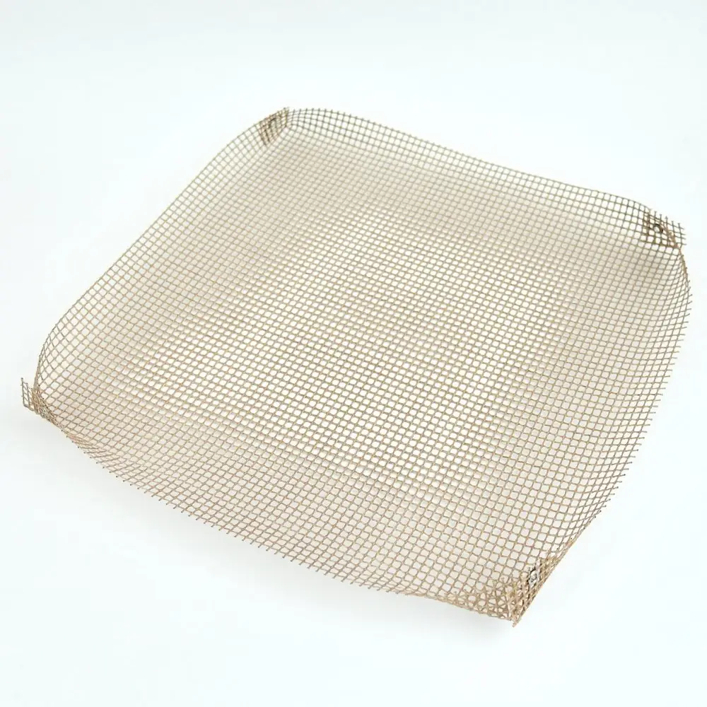 20 секунд достаточно для того, чтобы сетка остыла. Блюдо снимается без усилий — просто слегка изогните сетку-корзинку. Практична, проста и удобна в применении, не требует особого ухода. Легко моется водой с любым жидким моющим средством и мягкой губкой, не впитывает запахи. Жаростойкость — до 260°С. Изготовлена из тефлона армированного стекловолокном, заклепки из стали. Размер 33х33 см, высота 2,5 см. Выполнена в форме сетки-корзинки. ВНИМАНИЕ: Не режьте приготовленную пищу ножом в сетке-корзинке. Не используйте абразивные материалы и жесткие щетки.