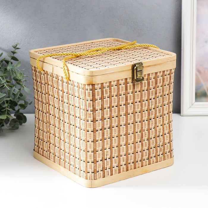 Шкатулка бамбук "Плетёнка" со шнуром 22х22х22 см