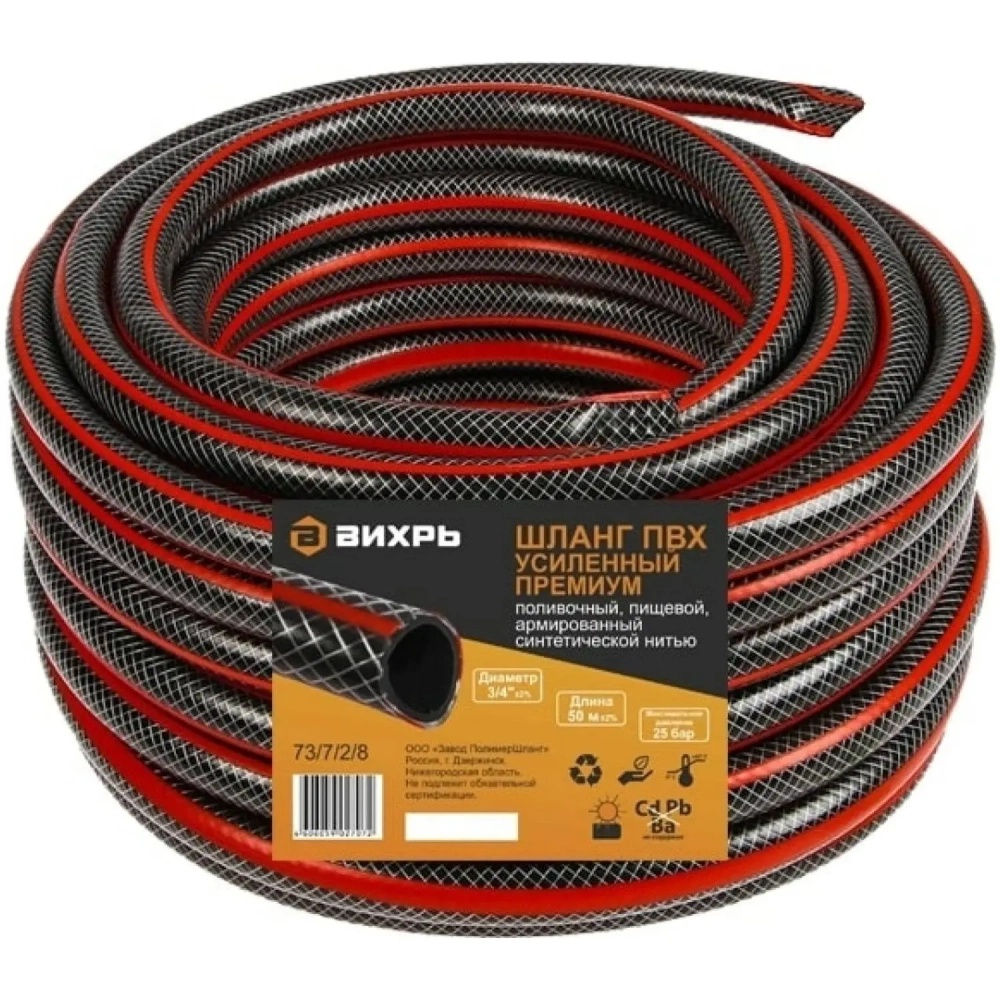 Шланг поливочный, усил. Трехслойный армированный 3/4, 50м Вихрь 73/7/2/8