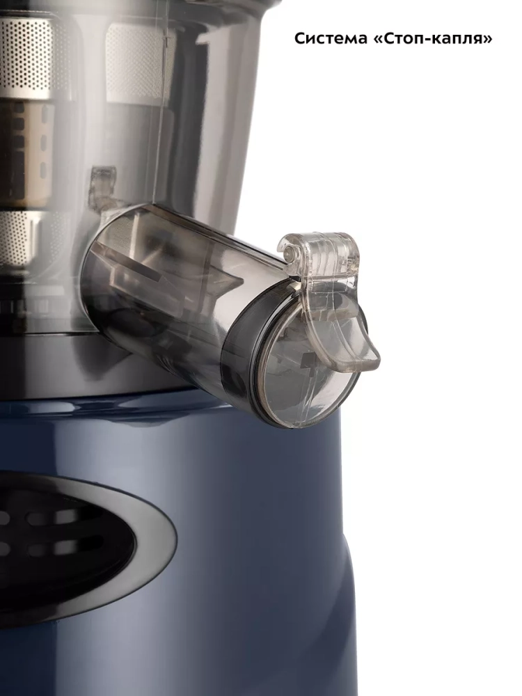 В соковыжималке КТ-1158 предусмотрена система «Стоп-капля». Это удобно, практично и к тому же позволяет сохранить поверхность вокруг соковыжималки чистой.