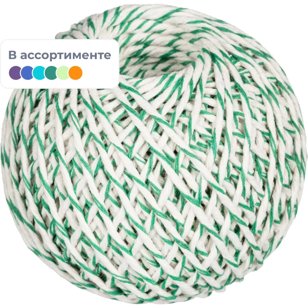 Шпагат хлопчатобумажный, 100 п.м., 1000 ТЕКС, цвет в ассортименте