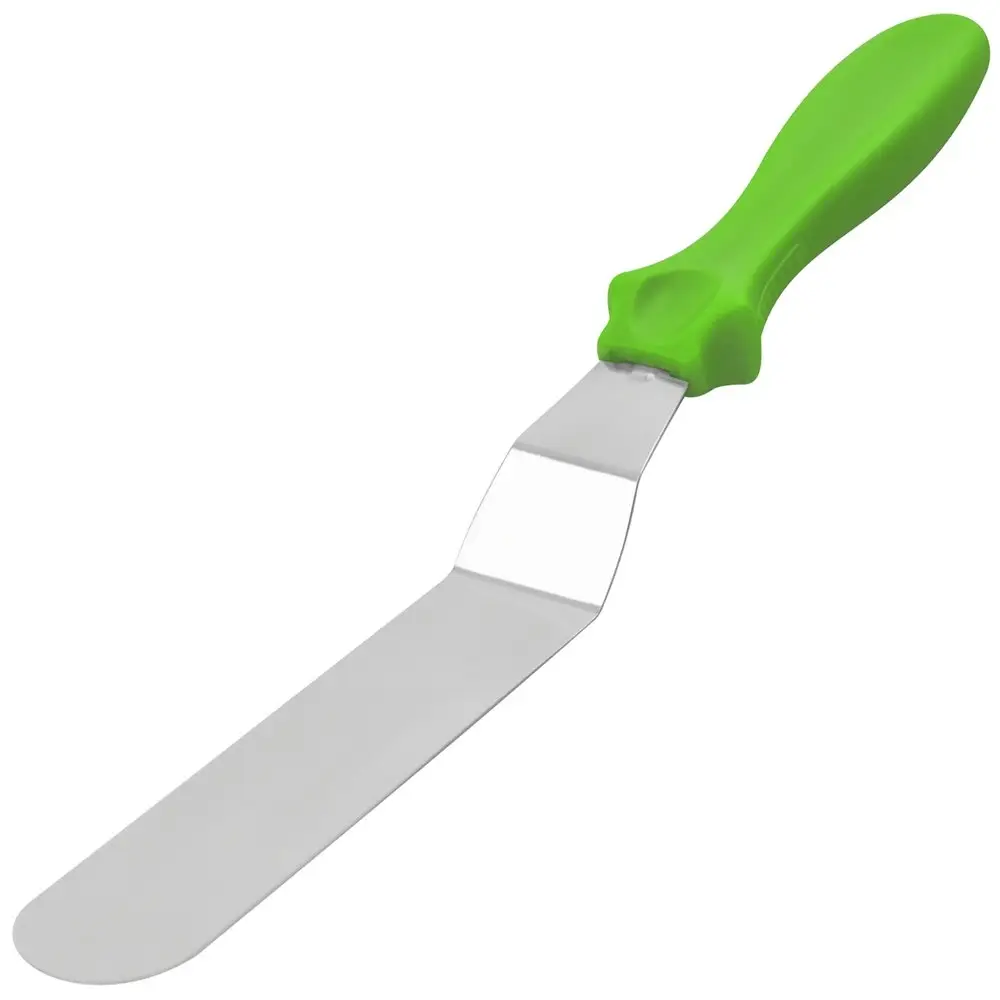 Кондитерский шпатель применяется для декорирования тортов и выпечки, используется для равномерного нанесения крема, сливок, мастики на торт. Инструмент может использоваться в качестве лопатки для переворачивания блинов, оладий и других готовящихся блюд. Инструмент изготовлен из нержавеющей стали, имеет удобную ручку, изготовленную из пластмассы. После использования промыть с жидкими моющими средствами.