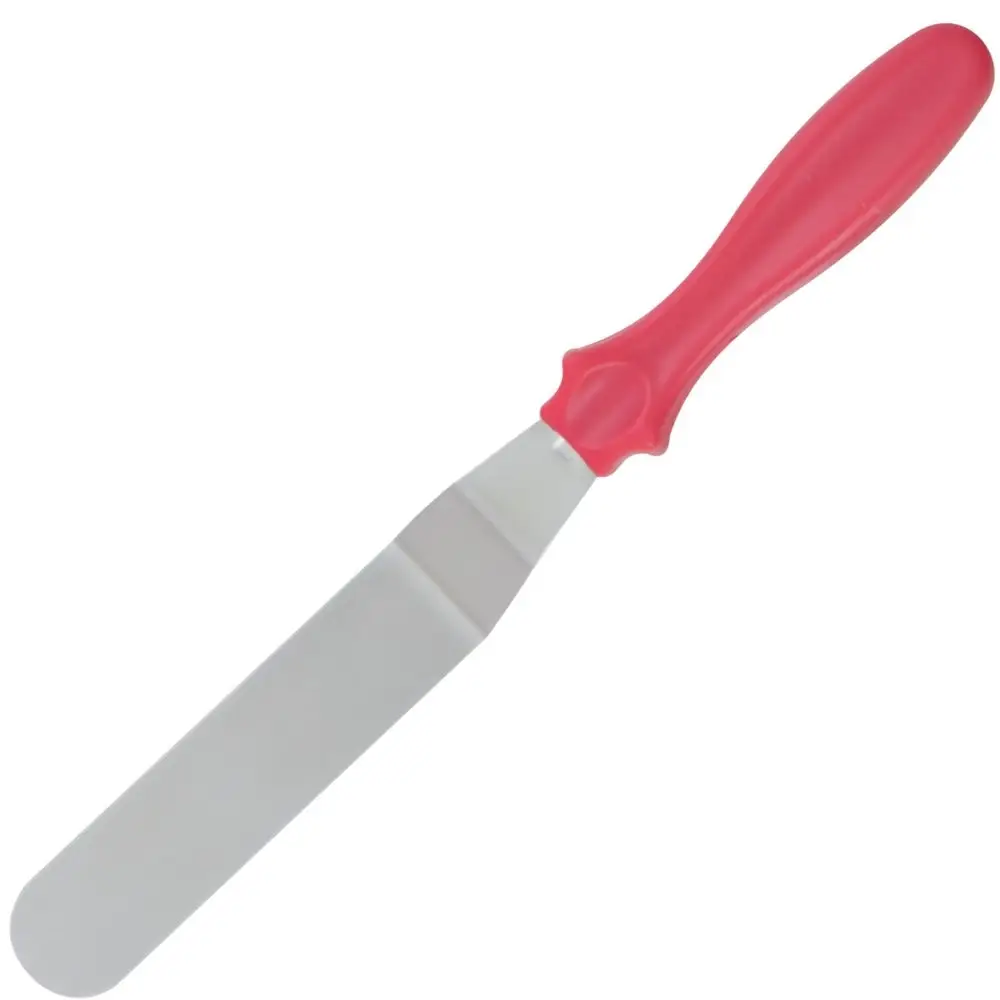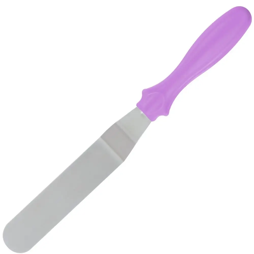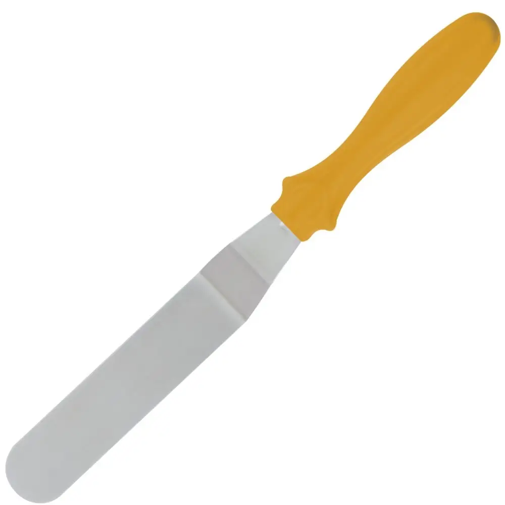 Кондитерский шпатель — универсальное приспособление для декорирования тортов, выпечки. Инструмент позволяет сглаживать неровности торта, равномерно наносить крем, сливки, мастику. Шпатель может использоваться в качестве лопатки во время приготовления и переворачивания блюд: блинов, стейков, оладий. Изготовлено: рабочая часть из коррозионностойкой (нержавеющей) стали, ручка из пластмассы (полипропилен).