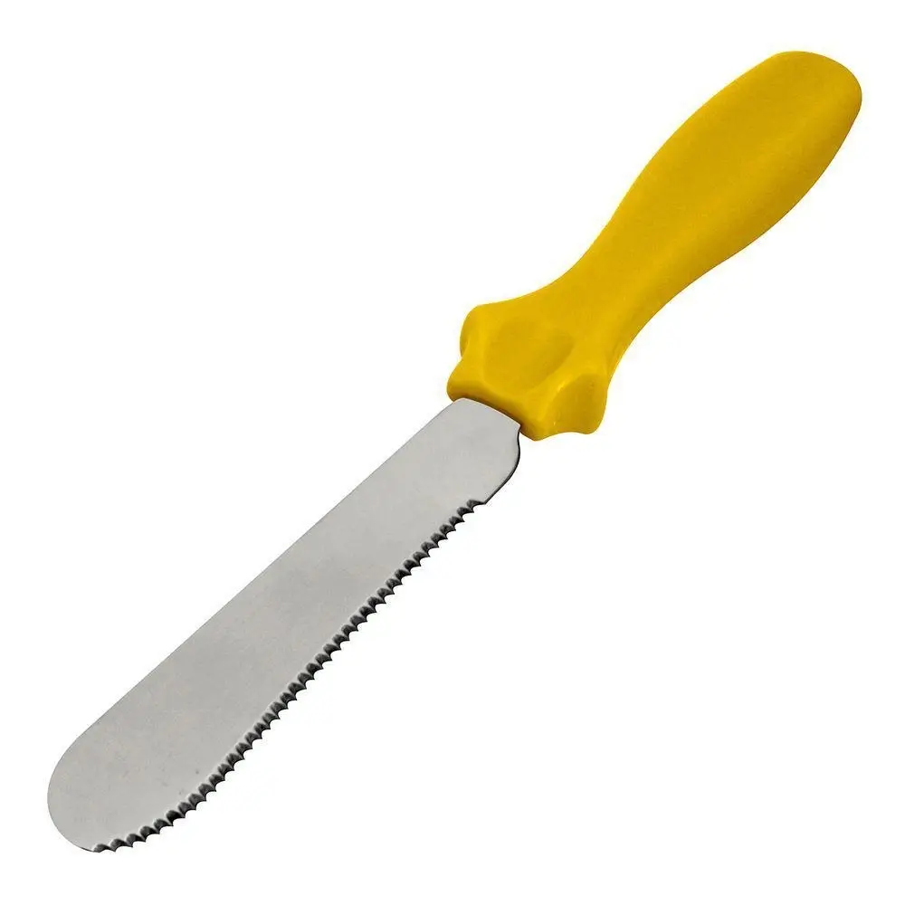 Шпатель применяется для декорирования тортов и выпечки. Это прекрасный инструмент для сглаживания неровностей торта, а также для равномерного нанесения крема, сливок и т.п. на торт. Зубчатая сторона шпателя может декорировать выпечку неровной поверхностью крема. С помощью нее вы сможете оставить волнообразные оттиски на креме. После использования промойте в проточной воде с жидкими моющими средствами. Изготовлено: рабочая часть из коррозионностойкой (нержавеющей) стали, ручка из пластмассы (полипропилен). Длина 21 см.
