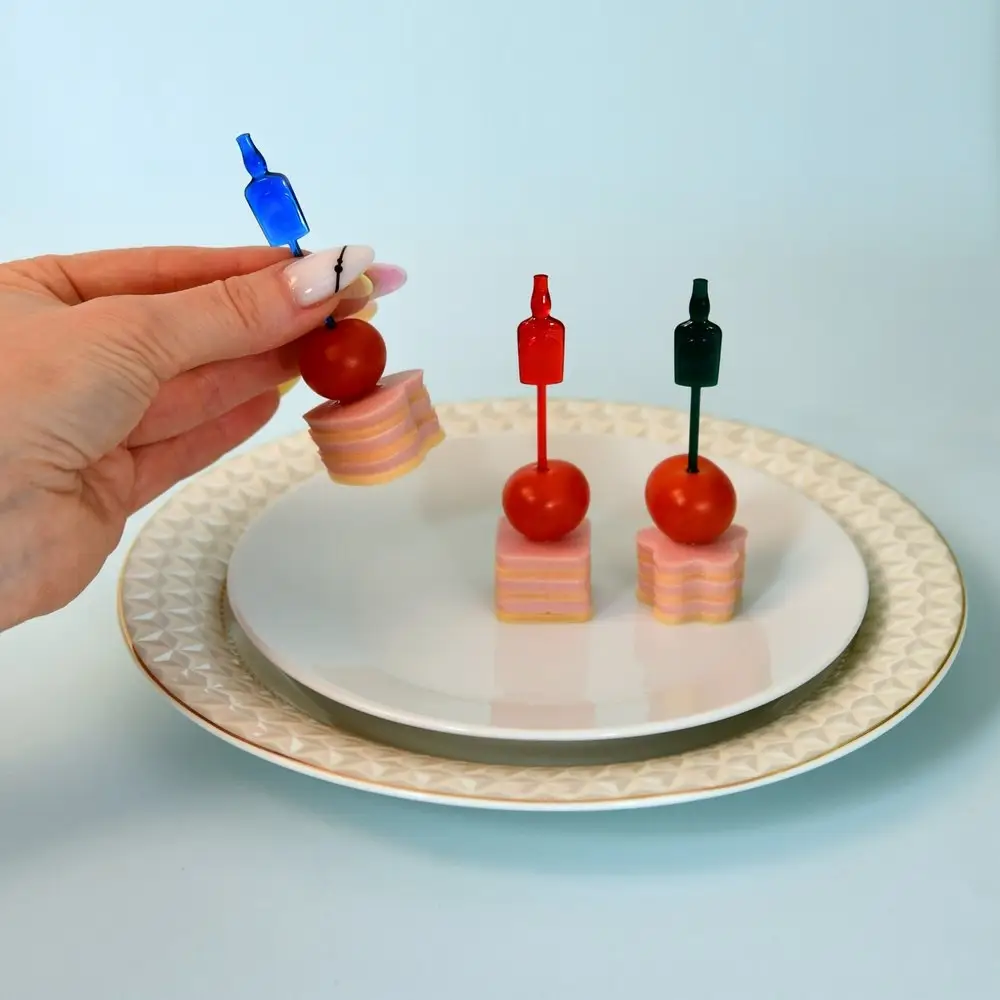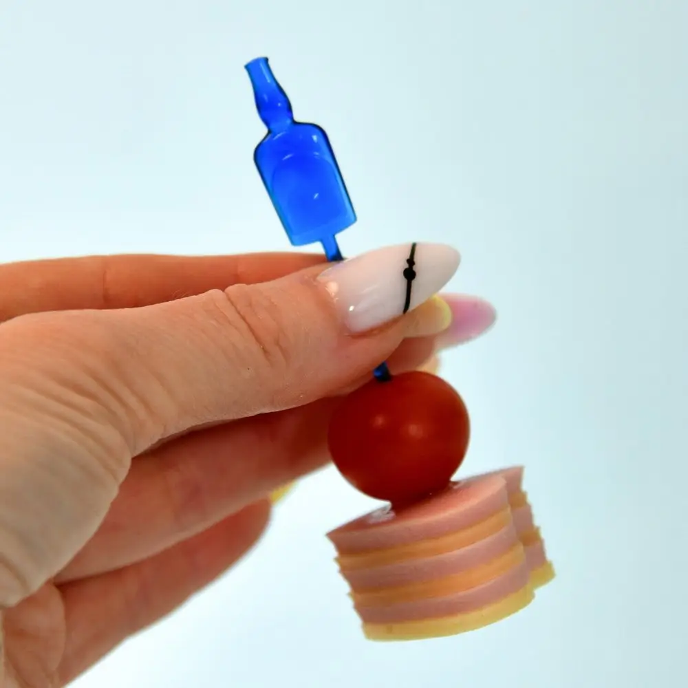 Украшайте вечеринку оригинальными закусками. Канапе — это фуршетная закуска, которая готовится с использованием шпажек. На пики нанизываются кусочки овощей, мяса, рыбы, сыры, фрукты, хлеб и многое другое. Шпажки для канапе «Бар» — это не только функциональный предмет, но и украшение вашего блюда. Изделия можно использовать для оформления десертов, для проведения дегустаций. Шпажки рассчитаны на многоразовое использование, после применения промывайте их в проточной воде с моющими средствами. Не подвергайте воздействию высоких температур.