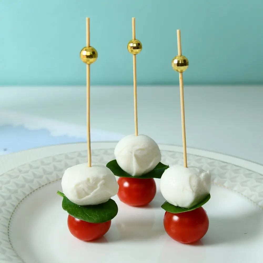 Шпажки используются при сервировке стола многослойными мини-бутербродами (канапе) из овощей, фруктов, ягод, сыров и мясных продуктов. Идеально подходят для фуршетов, вечеринок и праздников. Выбирайте любимые ингредиенты для приготовления порционных блюд, насаживайте их на шпажки и готовьте с удовольствием! Шпажки заменят десертные вилочки на вашем праздничном столе, а оригинальный дизайн поднимет настроение гостям. Шпажки продаются в наборе по 24 штуки, это оптимальный вариант, если вы планируете позвать большое количество гостей. Шпажки предназначены для одноразового использования. Изготовлены из дерева (бамбук), декор из пластмассы (ABS). Общая длина шпажки 12 см.