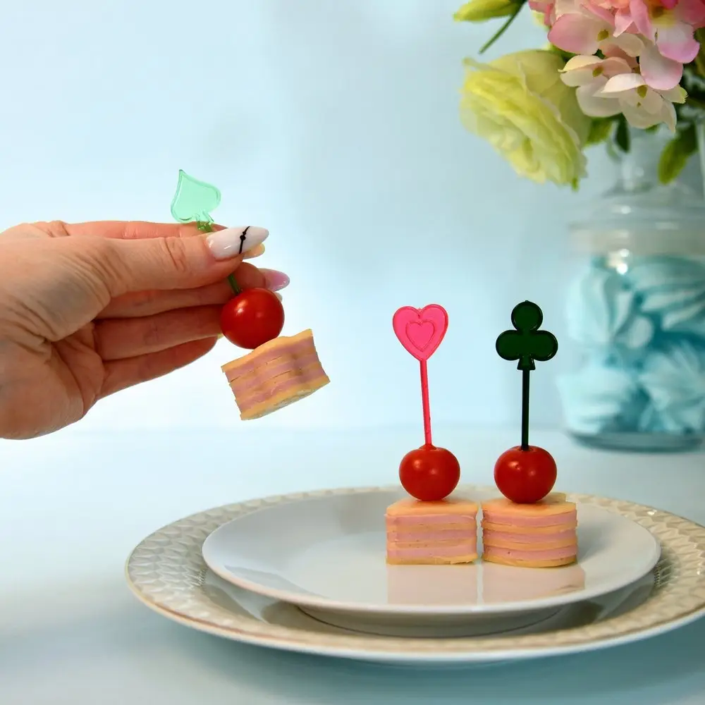 Шпажки для канапе-идеальное решение для праздничного стола. Для фуршетов и вечеринок нет ничего лучше канапе — миниатюрных закусок, нанизанных на шпажки. Фуршетные мини-закуски, приготовленные из овощей, ягод, фруктов, сыров, рыбных и мясных продуктов. На одной стороне изделия расположено острие, на другой декоративный элемент. Канапе нанизываются на шпажки и смотрятся оригинально на праздничном столе. Закуски актуальны не только на фуршете, но и на детском празднике, на вечеринке и как дополнение к банкетным блюдам. Кроме того, такие пики смогут заменить десертные вилочки, с их помощью можно брать небольшие закуски: кусочки сыра, картофель фри, оливки, креветки и т.п. Шпажки предназначены для многоразового использования.