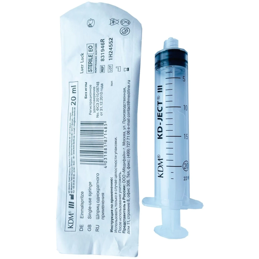 Шприц 3-комп. однораз. 20мл LL без иглы 50шт/уп KD-JECT